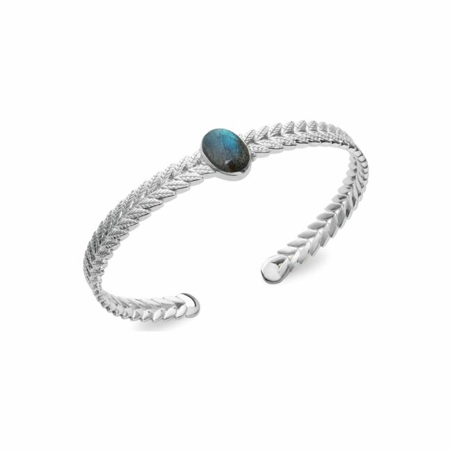 Bracelet jonc en argent rhodié et labradorite