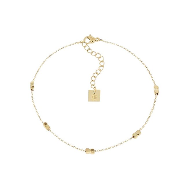 Chaine de cheville ZAG en acier doré et oxyde de zirconium