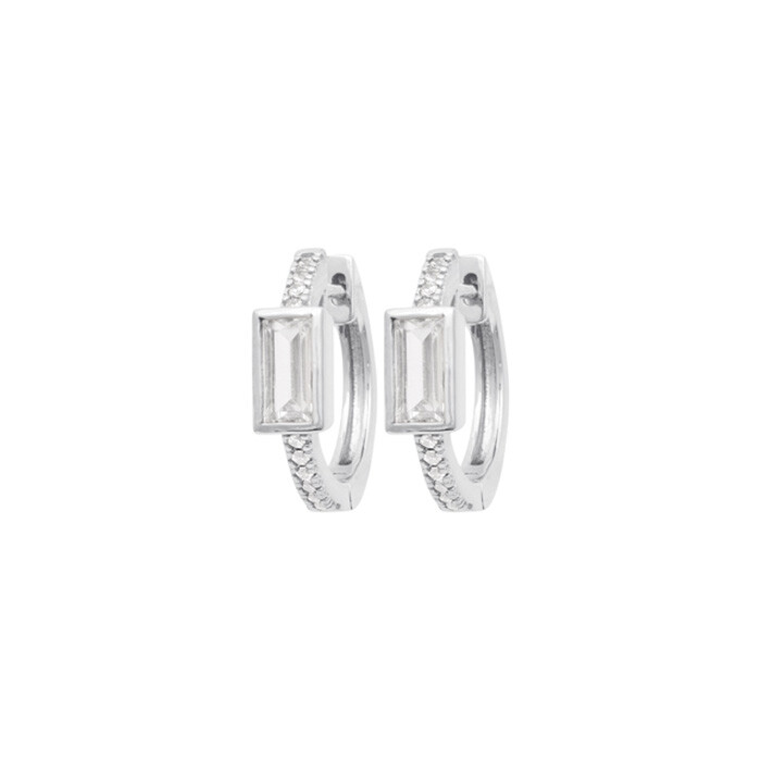 Boucles d'oreilles créoles en argent rhodié et oxydes de zirconium