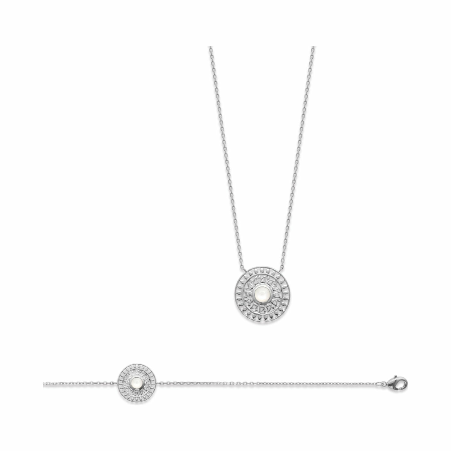 Bracelet en argent rhodié et pierre de lune, 18cm
