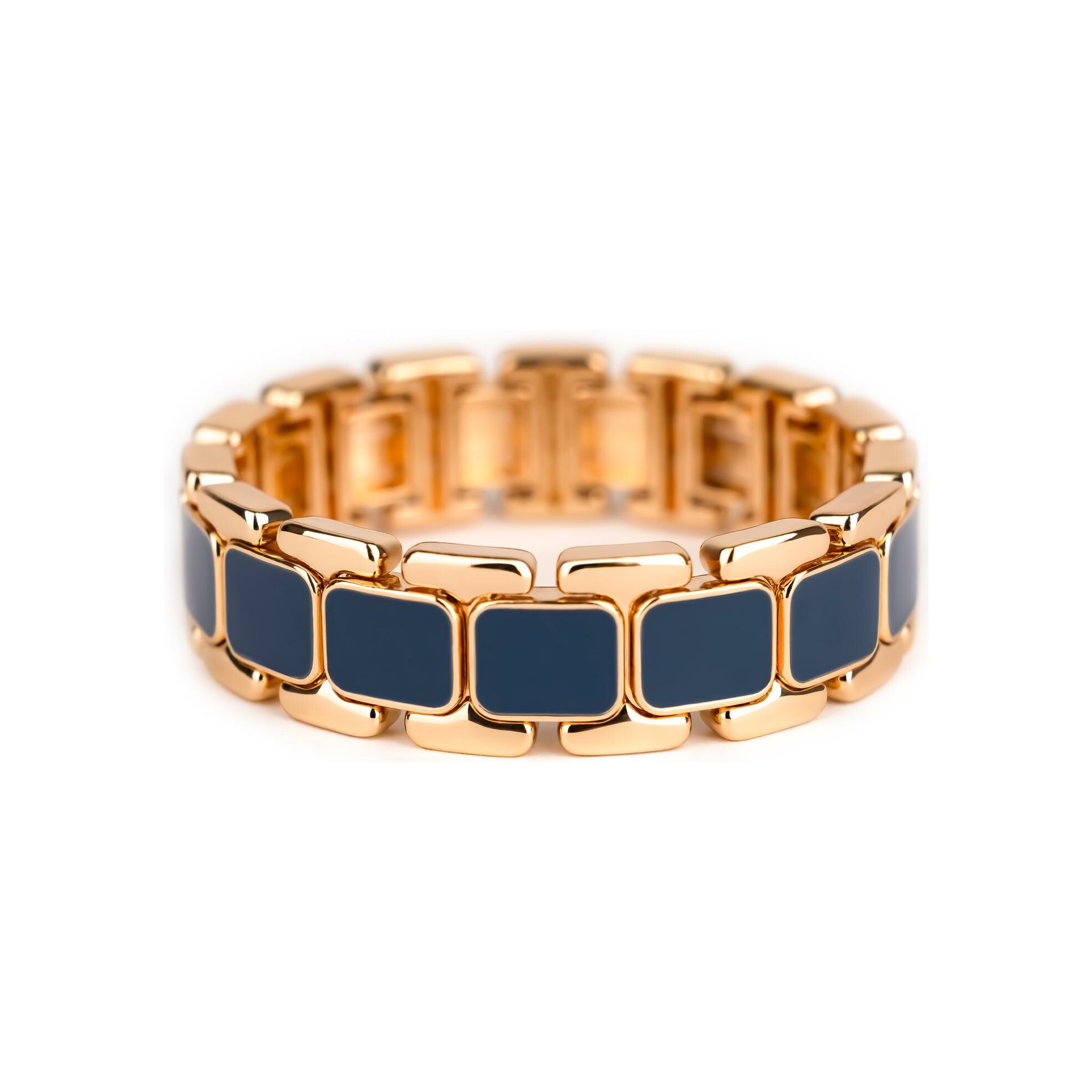 Bracelet Simone à Bordeaux Tempo Bleu Nuit en métal doré émaillé